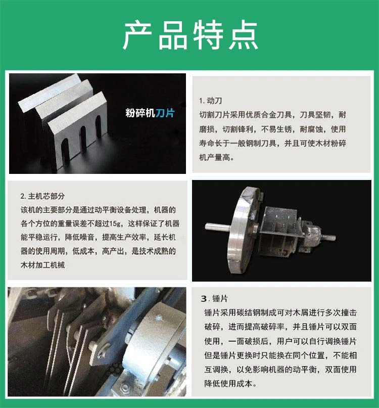 木屑粉碎机采用刀片切割和高速气流冲击,碰撞双重粉碎功能于一体,并能同时完成微料分选加工工序。在刀片切割粉碎过程中,转子产生高速气流,随刀片切割方向旋转,物料在气流中加速,并反复冲击使物料同时受到双重粉碎,加速物料的粉碎率。