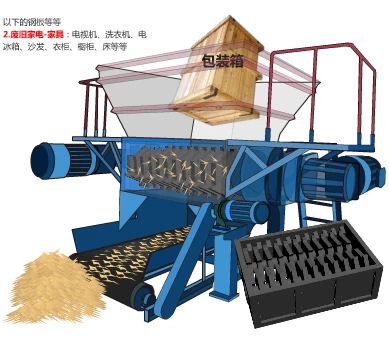 木材撕碎机可撕碎:木材、木料、模板、门板、树根、废旧家具、旧桌子、旧椅子、旧板箱、旧门窗料、树枝等木质材料。粉碎后的木质材料颗粒细,可用作建材木板原材料、香菇培养基等用途,变废为宝。